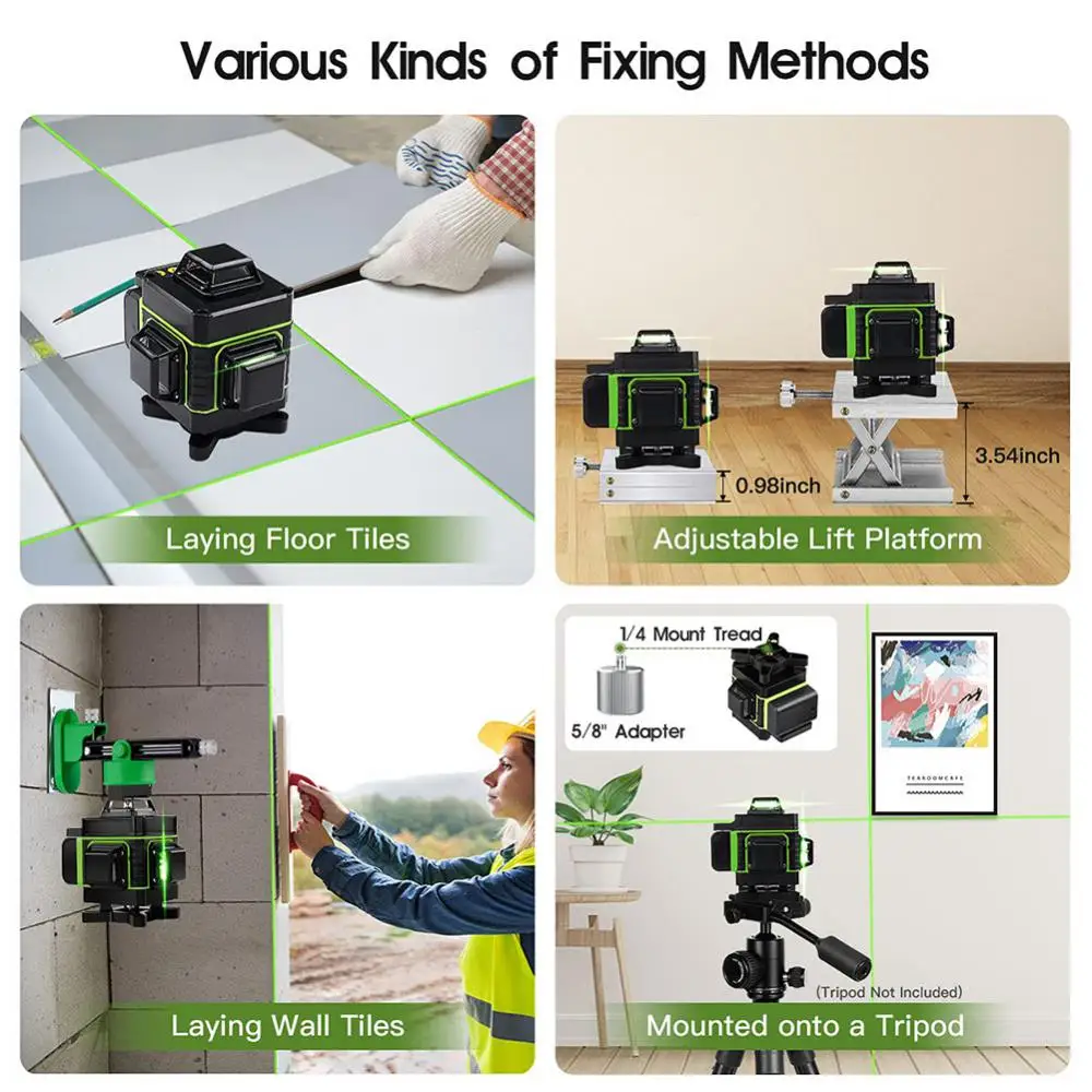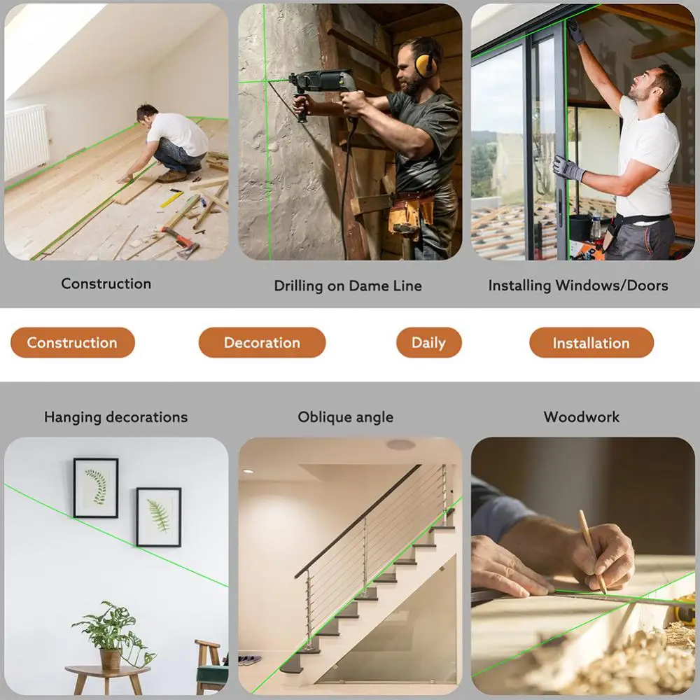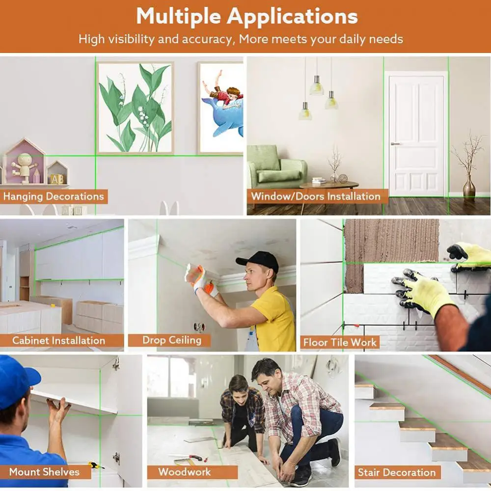 【5/8/12/16 Line Laser Line Glass Window Accessories】: Our self-leveling laser level is a flat 5/8/12/16 line laser line, which can cover the floor, wall and ceiling around the room. Horizontal and vertical lines intersect at a 90° angle to help you quickly visualize and complete square layouts. Portable size makes it more comfortable and convenient to use
