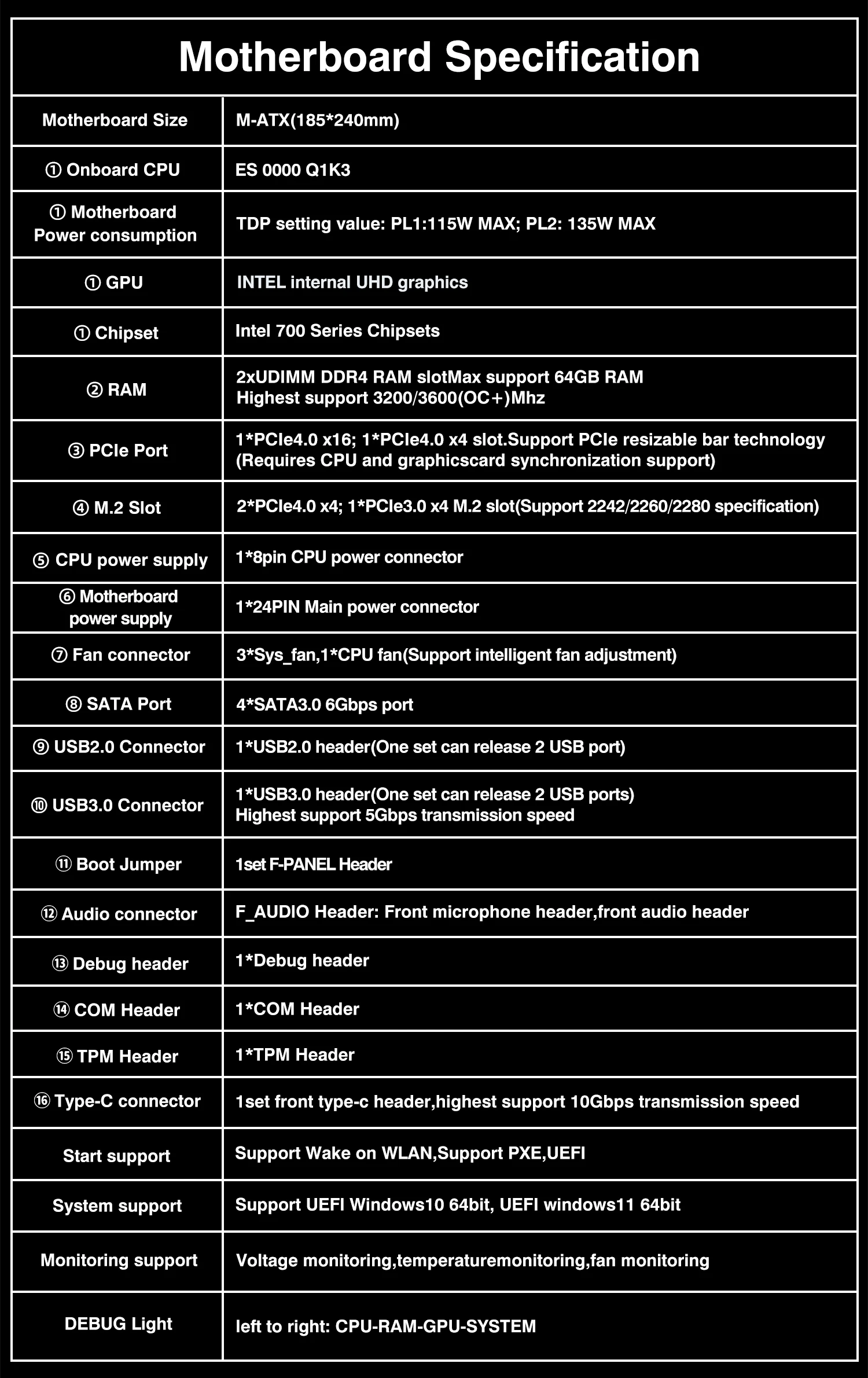 - Onboard Connectors & Header: 24-pin Main Power Connector,CPU Fan Connector(s),AAFP Connector,SPI TPM Header,Addressable RGB Header,Chassis(SYS) Fan Connector(s),USB 3.0 Connector,OthersConnectors & Header,Speaker Connector,USB 2.0 Connector,COM Port Header,System Panel(s) (Chassis intrusion header is inbuilt)