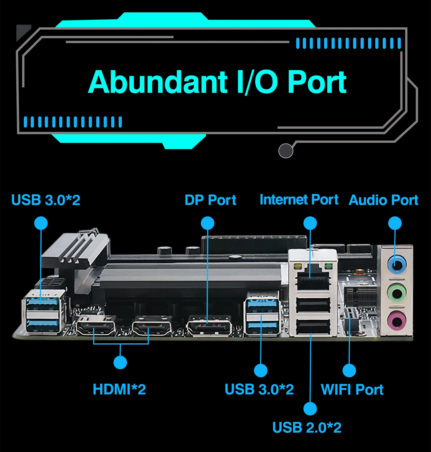 - Back I/O Ports: 1x RJ45,WIFI,3 x Audio Jacks,4x USB 3.2/3.1 Gen 1,USB Type-C,Function Button,Displayport,HDMI 2.0